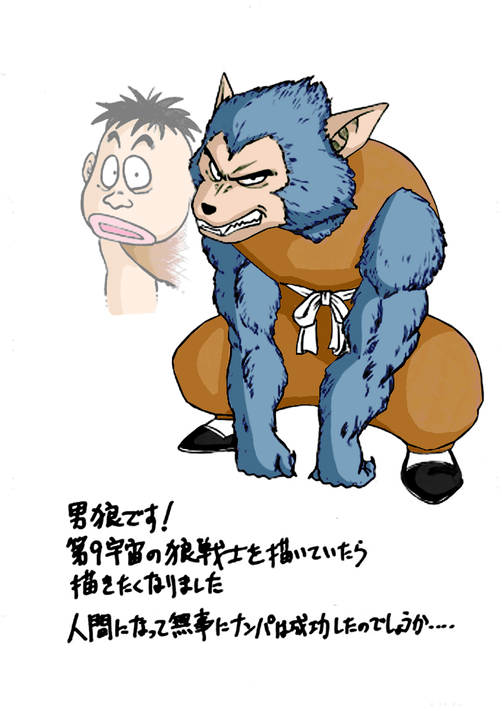 Este mes Toyotaro nos deleita con una ilustración del lobo hombre. Este individuo participó en el 22º torneo de las artes marciales. Tenía una vendetta personal contra Jackie Chun, porque tres años antes destruyó la Luna, lo que le dejó atrapado en su forma de lobo para siempre y ya no podía ligar con chicas. Jackie Chun utilizó la calva de Krilin para hipnotizarlo y volverlo humano una vez más.