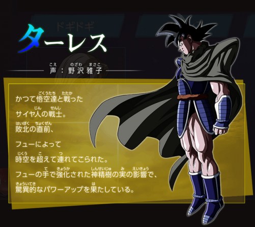 Turles: Es un saiyano que sobrevivió a la destrucción del planeta Vegeta. No sabemos muy bien cuál era su relación con el ejército de Freezer, pero lleva su misma armadura y tenía a varios soldados a su cargo. Su fuerza aumentó cuando se comió los frutos del árbol sagrado.