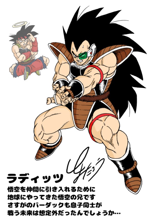 El primer enemigo de Dragon Ball Z, el hermano mayor de Goku, Raditz. Raptó a su sobrino Gohan para tratar de que su hermano se uniera a él. Goku se alió con su archienemigo Piccolo para vencerlo y lo logró, pero a costa de su vida.