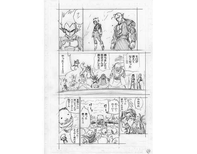 Moro ha sido derrotado y Goku y los demás se congratulan por su victoria. El Daikaioshin se despide de Obb y tras volver al santuario, vuelve a tomar la forma de Boo. Celebran una comida todos juntos y Goku lleva a Esca a su planeta. Un tiempo después, con las bolas de dragón de nuevo activas y reunidas, reparan los daños causados por el mago.