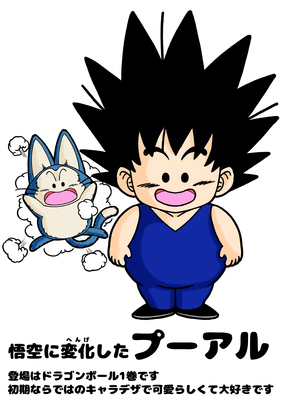 Acabamos el año con Puar. Realmente Puar ha aparecido en numerosas ocasiones, pero Toyotaro nos quiere recordar la vez en que se transformó en Goku.
