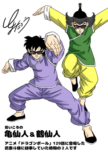 Este es el aspecto que tenían en el capítulo 129, no se considera canónico y en el manga nunca aparecieron de este modo. Goku viajó al pasado durante el entrenamiento con Mr. Popo y se encontró con estos dos aprendices de Mutaito.