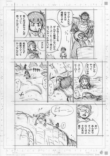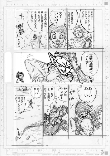 Llegan los bocetos del capítulo 91. Piccolo va a la guardería para recoger a Pan, que está con su profesora Janet. Pan está muy contenta porque le gusta pasar el tiempo con Piccolo. Ella le cuenta que a Trunks y Goten ya no les permiten seguir con sus aventuras de superhéroes, pero que a ella le gustaría serlo también. Entonces Piccolo decide que va a entrenarla. En Ciudad Oeste la policía está preocupada por el ejército de la Red Ribbon. Krilin se encarga de compartir su conocimiento del caso y cuenta la relación familiar que el Dr. Hedo tiene con el famoso Dr. Gero. El riesgo de que el ejército lo reclute cuando salga de la cárcel es muy alto, y sería muy peligroso. Ciertamente, vemos a Magenta y Carmine hablando, eso es exactamente lo que traman.