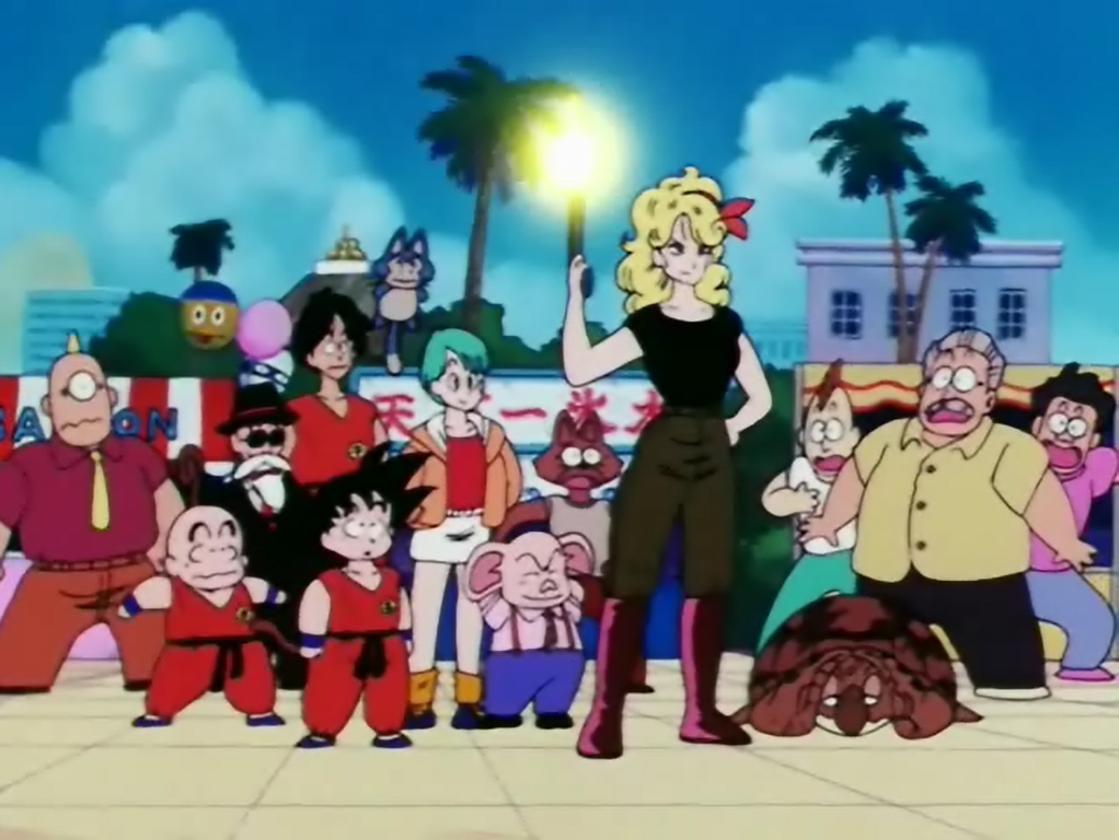 En esta ilustración final la vemos también junto a Goku y todos los demás montada en este vehículo, para despejar aún más las dudas sobre el supuesto olvido del autor. Fue una imagen bonus que se publicó en 1989.