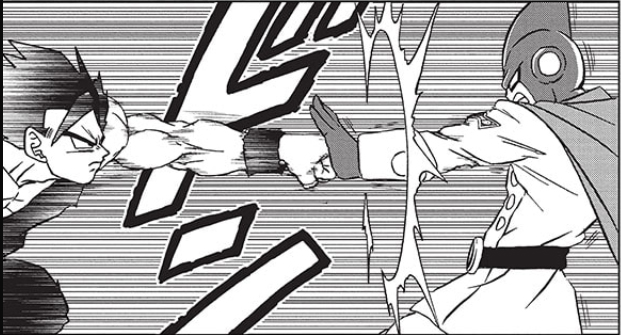 Gohan lucha contra Gamma 1 con todo su poder y Piccolo y Pan celebran que su plan para motivarle ha funcionado. Magenta está furioso, envían a Gamma 2 a unirse a la lucha.