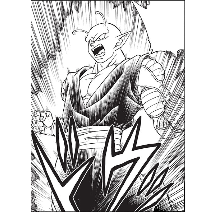 Piccolo va cayendo al vacío y entonces algo se activa en él. Una especie de bonus que le concedió el dragón por si lo necesitara, Piccolo accede a su poder de namekiano y el símbolo del árbol de su planeta se enciende en su espalda. Reaparece totalmente musculado y con una tonalidad naranja.
