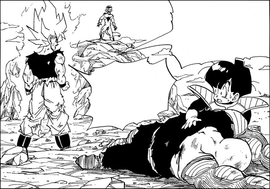 La viñeta en la que Goku se acaba de convertir en súper saiyan es muy buena.