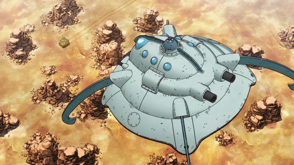 La parte de arriba de la nave se separa del depósito y persigue al tanque de los aventureros disparando misiles y bombas. Para defenderse, Beelzebub y Thief empujan el tanque con su fuerza y Rao dispara hacia la nave, han logrado detenerla.