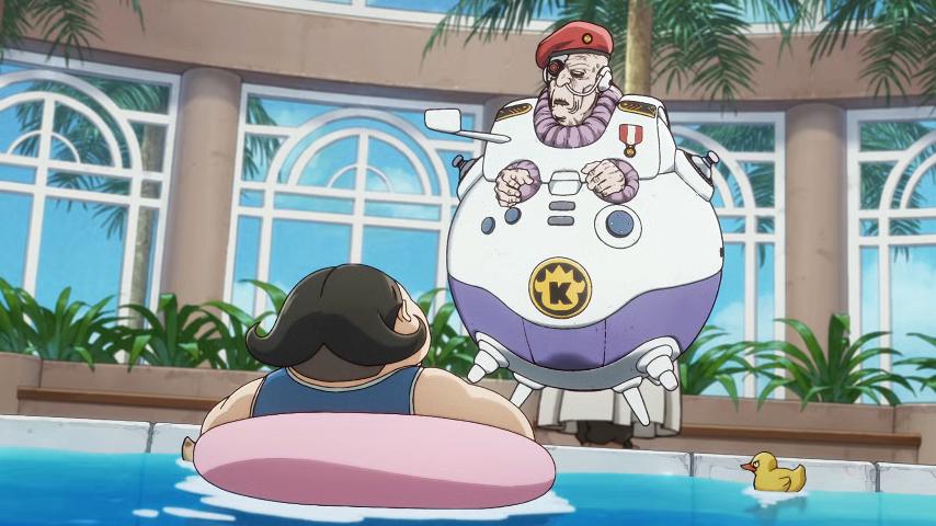 El Rey se divierte en su piscina privada mientras la gente común sufre escasez de agua. El comandante Zeu le informa sobre el tanque robado y el incidente con la aeronave. Planean utilizar los medios de comunicación contra sus enemigos.