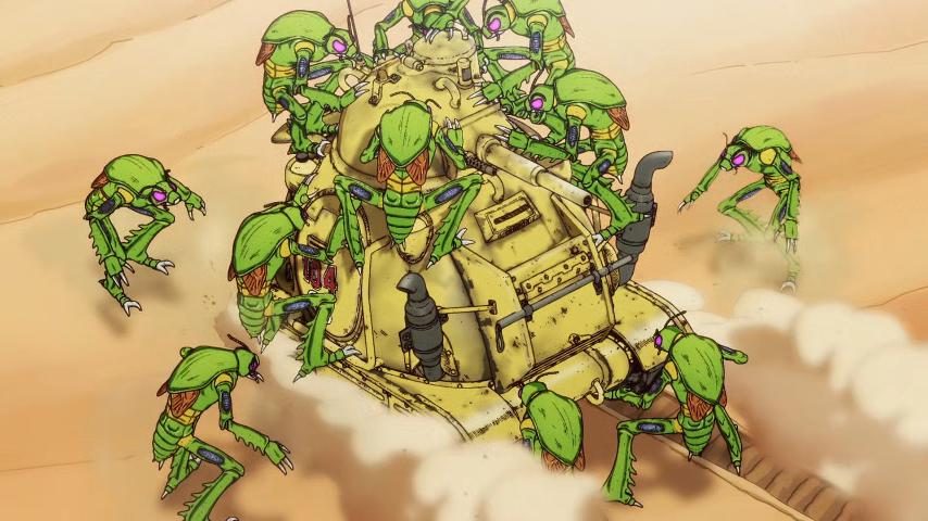 Zeu pone en marcha su plan, suelta a los hombres insecto creados por el Dr. Posé. Son verdaderamente fuertes y resistentes, incluso derrotan a Beelzebub. Los tres amigos tienen que esconderse dentro del tanque para protegerse.
