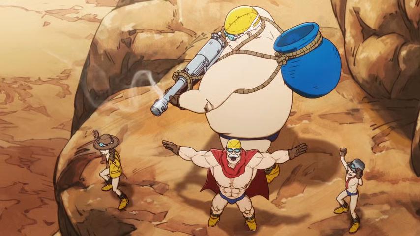 La presa se rompe, el agua vuelve a recorrer los ríos de Sand Land. Tanto los ciudadados humanos como los demonios lo celebran a lo grande. El general Are da la noticia por radio y anuncia que el rey donará la mitad de su fortuna a los desfavorecidos.