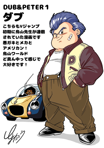 La segunda ilustración del año es para Dub y Peter, una serie que tuvo cuatro números en la revista V-Jump en 1993. Matones, coches, chicas guapas y carreras, Dub se adelantó en el tiempo a Fast and furious.