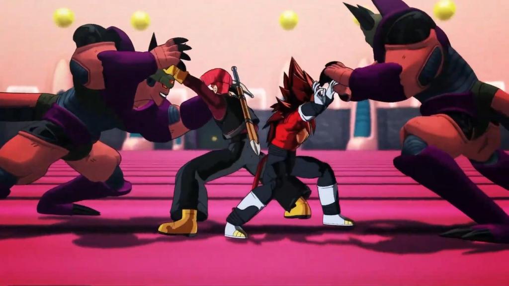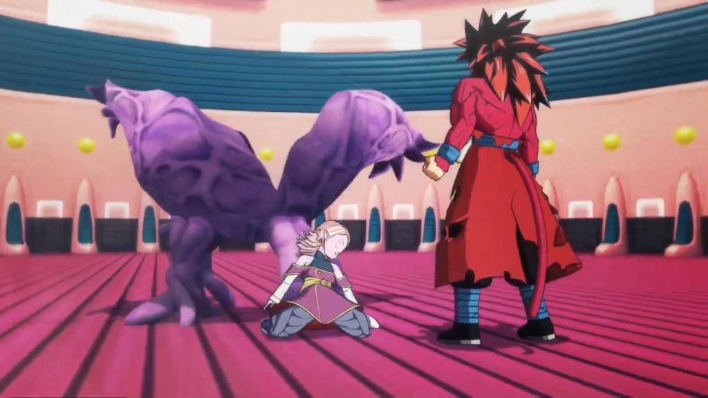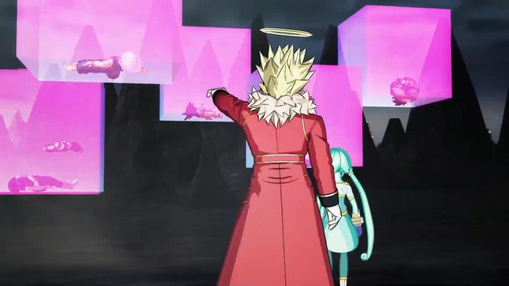 Goku esta tranformado en ultra instinto en frente del gigante Ozotto. Hearts y Laggs salen liberando dentro de unos cubos a todos los guerreros que estaban atrapados.