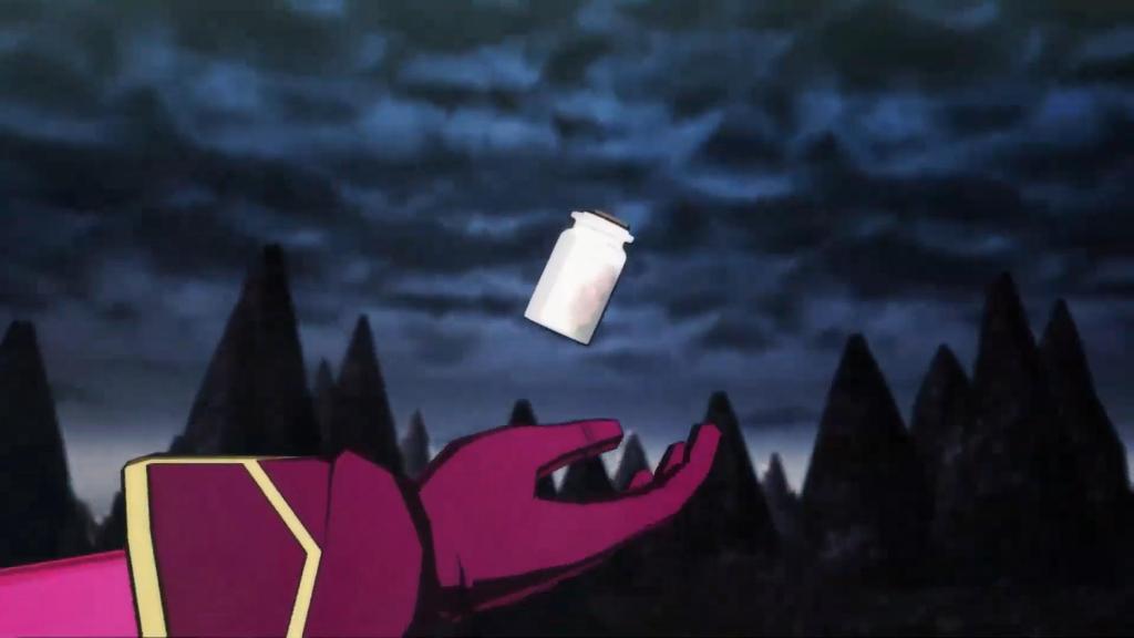 Un ojo de Ozotto ha sobrevivido, Aiosu lo mete en un bote para guardarlo a buen recaudo.