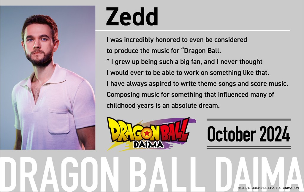 En el tráiler podemos oir el tema principal de Dragon Ball Daima. Tenemos los comentarios de los artistas músicos implicados, Zedd, Yukinojo Mori y C&K.