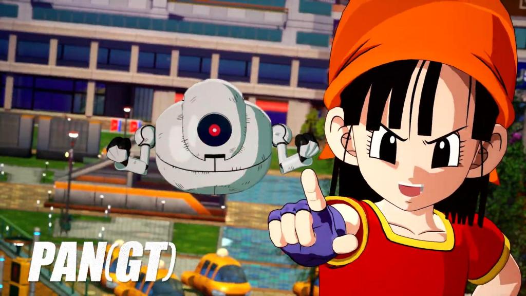 Pan fue una de las protagonistas indiscutibles de Dragon Ball GT, ella nunca adquirió el estado supersaiyan. El robot Giru la acompaña.