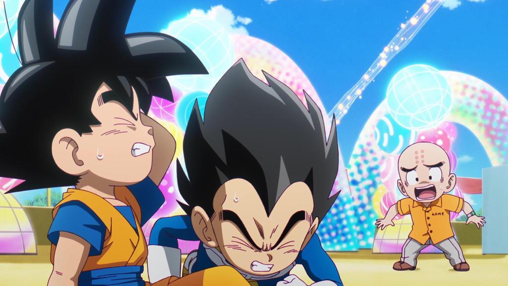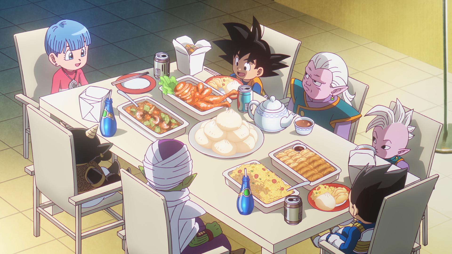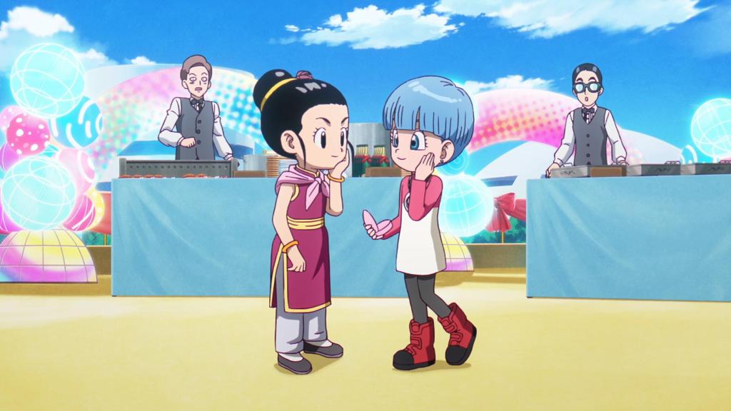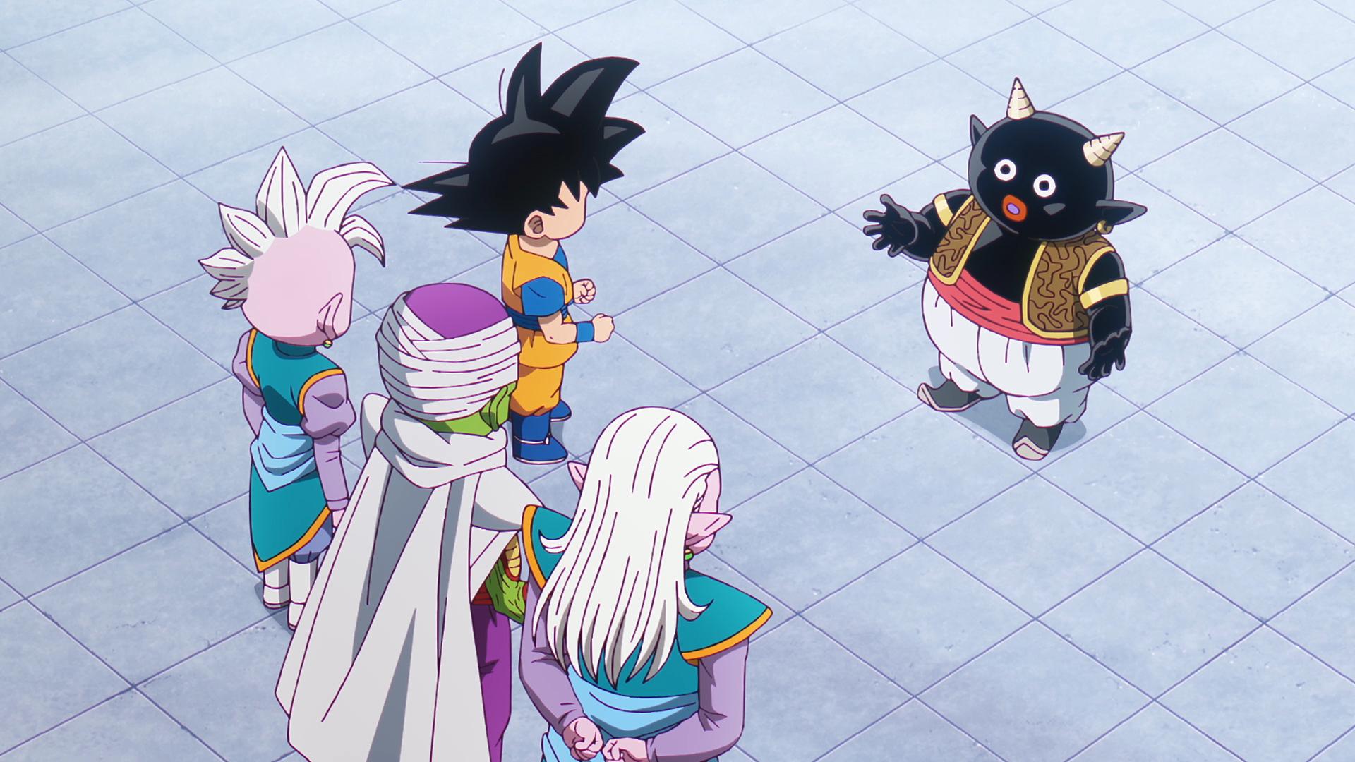 Goku y los demás están impactados por la situación. Todos ellos vuelven a ser niños, pero no el personal que les está atendiendo en la fiesta. Piensan que las bolas de dragón tienen algo que ver, así que Shin, Kibito, Goku y Piccolo se dirigen al templo de Dende.
