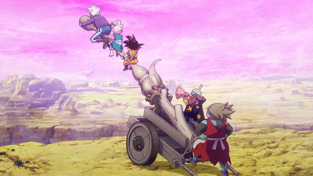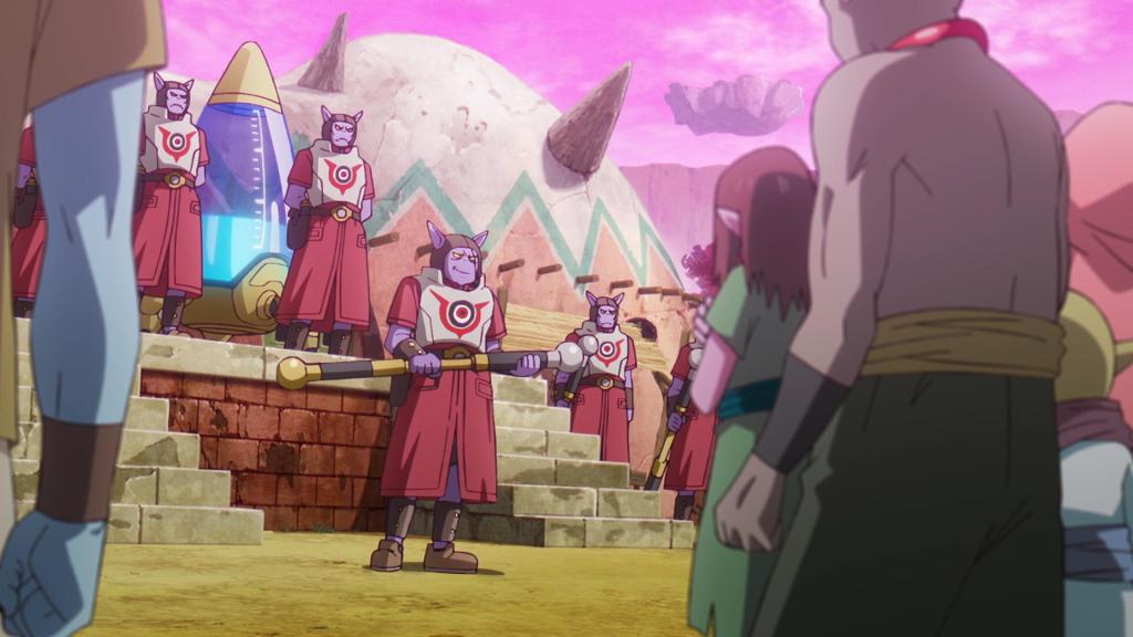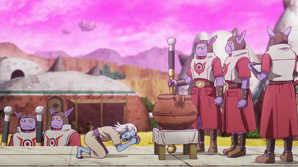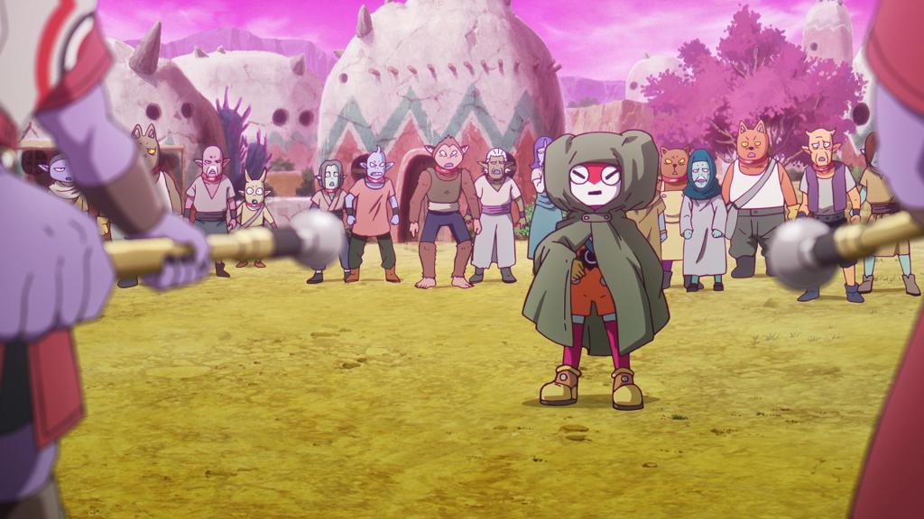 Uno de los aldeanos que no puede pagar es muy anciano y los soldados no se apiadan de él. Goku va a intervenir, pero alguien con una máscara se interpone para salvar al anciano. Es Majin Masque, tiene bastante habilidad, pero hay demasiados soldados armados.
