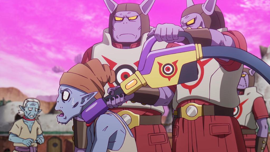 Se encuentran con un grupo de soldados reales que están recaudando unos impuestos altísimos a los aldeanos. A los que no pueden pagar, les quitan la energía mediante un aparato que les ponen en el cuello.