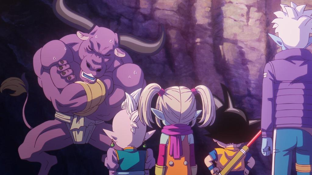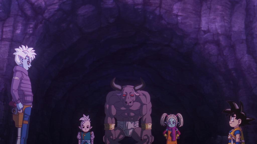 Minotauro no quiere pelear, se inventa una excusa para irse sin luchar y se vuelve a su cueva. Los demás seguierán su camino hacia la bola del dragón y el Tamagami del tercer mundo.