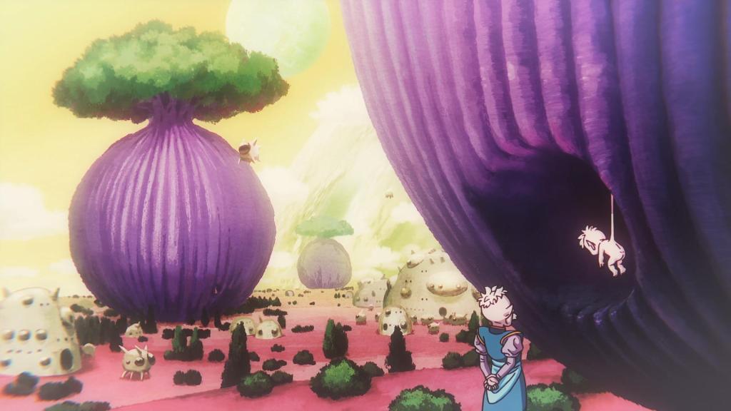 Glorio se ha tenido que realizar un aterrizaje forzoso, tenían demasiada carga, así que se desprenderán de la mitad. Goku tiene ganas de cagar, así que se va detrás de unas plantas para hacer sus necesidades. Entonces llega una nave de la guardia real y un par de soldados interroga a los otros tres viajeros sobre su presencia en ese lugar. Parece que se van medianamente convencidos, ha sido una suerte que Goku estuviese oculto en ese momento.