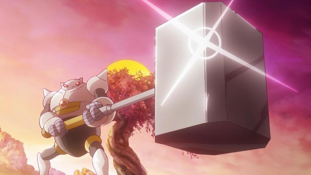 Una vez llenada la panza, Goku está listo para luchar, reta al protector de la bola y este acepta el duelo. El Tamagami numero 3 tiene un gran mazo y Goku podrá usar su palo mágico para contrarestarlo.