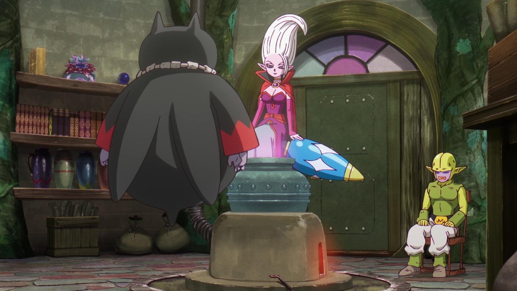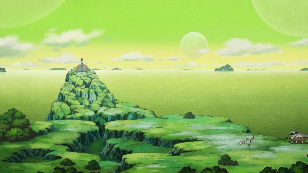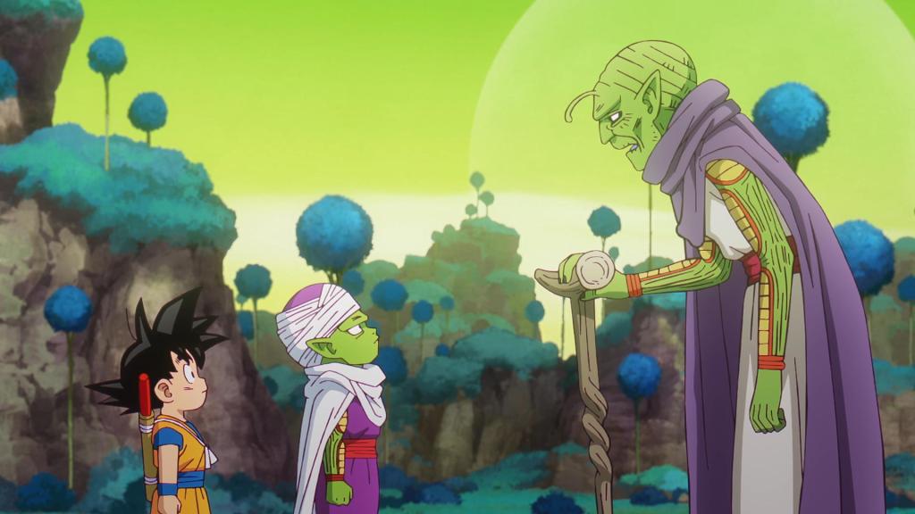 Neva les pide que lo lleven con ellos y aunque al principio se niegan, les acaba convenciendo porque es el único que habla el idioma namekiano, sin el cuál, no podrán pedir ningún deseo. Gomah y Degesu lo han visto todo desde su templo y están muy enfadados.