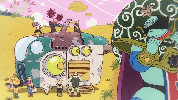 Hay problemas, la nave no aguanta bien el trayecto por el túnel, todos los viajeros se ven obligados a continuar volando, por suerte estaban muy cerca de la salida. Glorio y Hybis son los encargados de llevar las dos bolas de dragón. Nada más salir son atacados por la gendarmería, ya se habían percatado de que el sello del túnel había desaparecido.