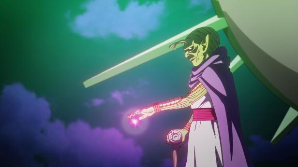Goku y los demás llegan hasta el Warp Sama, que está desactivado. Esta justo encima del tunel que conecta los dos mundos, que tiene un sello mágico infranqueable. Goku lo toca con su palo mágico y se electrocuta.