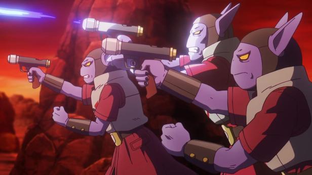 Gomah lanza a toda su infantería en contra de Goku y sus amigos, que se escudan tras unas rocas. Las pistolas de los soldados lanzan unos rayos que los pueden paralizar. Con mucho esfuerzo, logran avanzar hacia la fortaleza del rey.