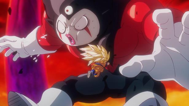 Pero la lucha continua, Goku contraataca en el estado supersaiyan 3 y asesta algunos buenos golpes a Gomah.