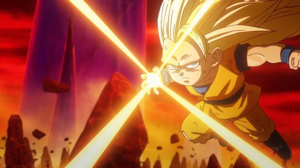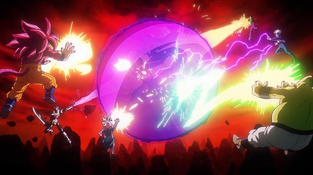 Todos los guerreros lanzan sus mejores ataques, pero Gomah puede con todos. Con el poder del tercer ojo, logra reducir a Goku a su estado base de nuevo. La cosa se pone difícil.