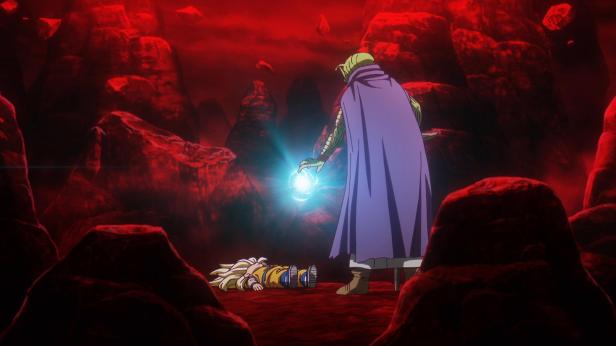 Todos los presentes lo están viendo, Goku y los demás están sorprendidos por lo que está haciendo Glorio, lo toman por un traidor. Arinsu ordena a Glorio que pida su deseo, que ella se convierta en la Reina de los demonios más poderosa de todos los tiempos. Glorio pronuncia unas palabras en namekiano.