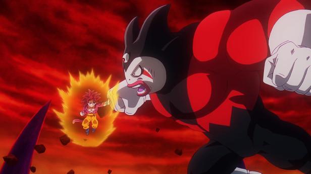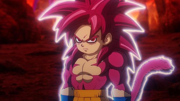 El hechizo ha hecho su efecto, Goku adquiere una nueva forma. Su cola vuelve a salir, le sale un vello rojizo por algunas partes de su cuerpo y sus ojos también cambian. Es la forma que en Dragon Ball GT conocemos como supersaiyan 4. Nos quedamos sin palabras ante los hechos.