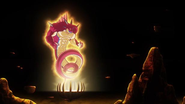 El Tamagami 1 también participa en la pelea, ataca junto a Goku, pero Gomah es capaz de rechazarlos a los dos sin problemas. Goku queda tendido en el suelo y Gomah va a lanzar un ataque mortífero desde el cielo. Neva se acerca a Goku y utiliza algún tipo de hechizo mágico sobre el chico.