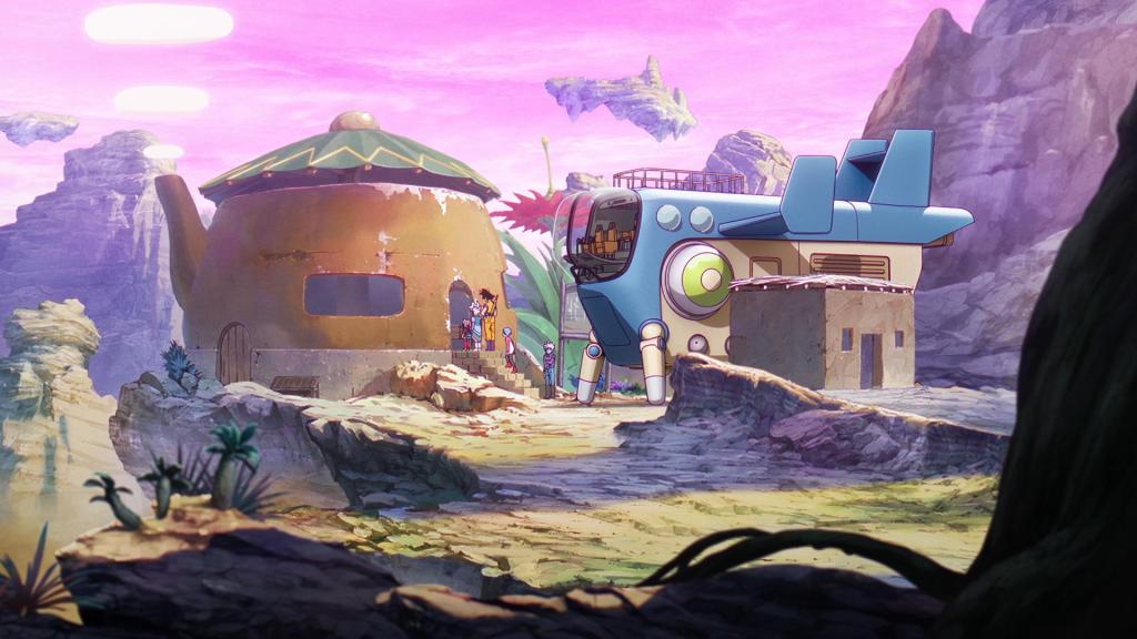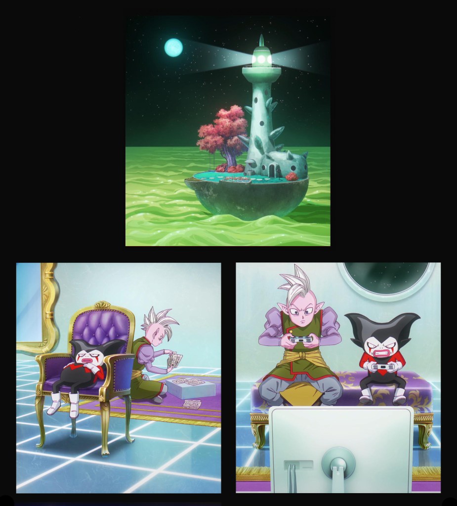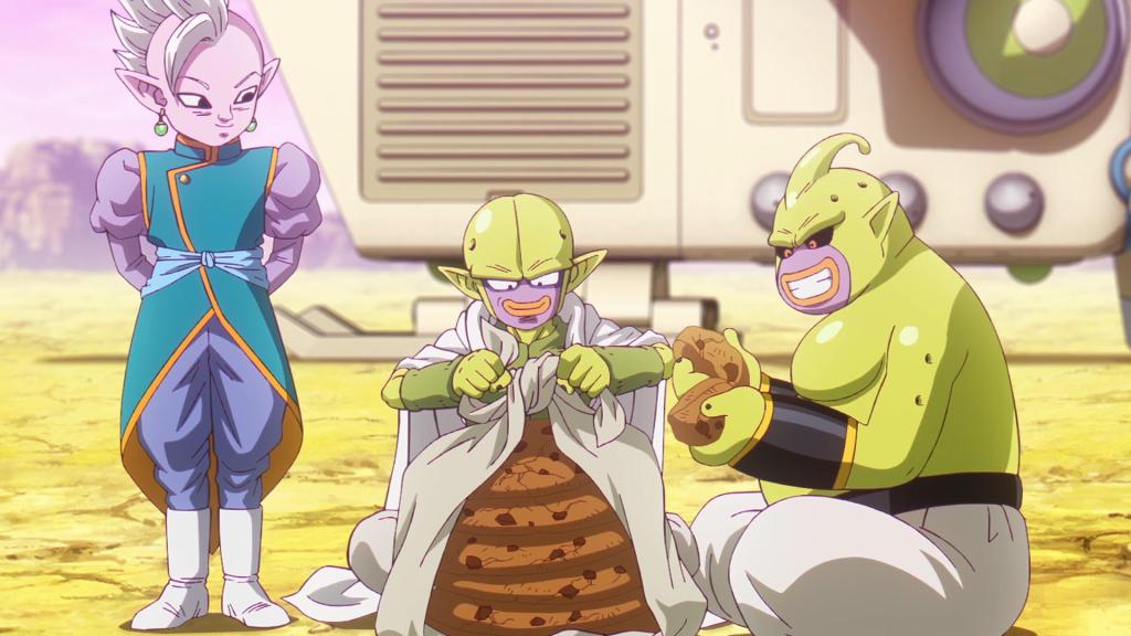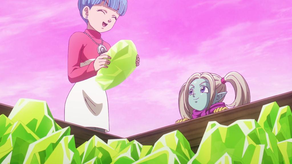 Unos días después Goku y los demás están en el castillo de Kadan listos para marcharse. Shin mira como Kuu y Duu disfrutan de unas galletazas. Panzy regala a Bulma una caja entera con el mineral llamado majalita.