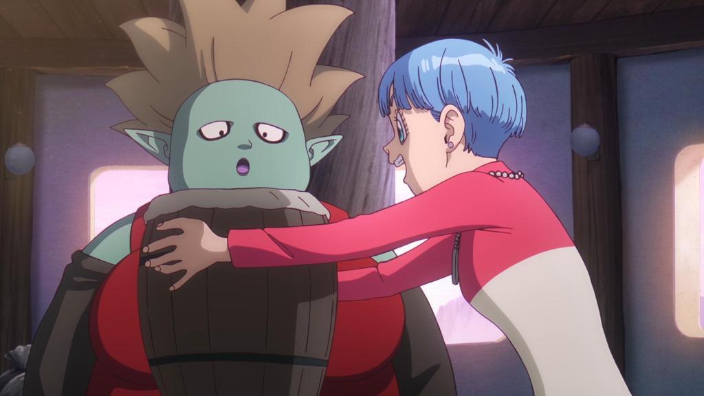 Mientras vuelan hacia su mundo, Goku quiere hacer una parada en la posada donde compraron los insectos medicinales, quiere comprar algunos más. La mujer que regenta el negocio reconoce a Goku y Shin, pero se sorprende de verlos como adultos. Bulma aprovecha para comprar insectos que rejuvenecen la piel.