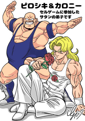 Toyotaro nos trae a los dos discípulos de Mr. Satan que participaron en los juegos de Cell, aunque solamente ocurrió en el anime. Son Caroni y Piroshiki, que vinieron con su bella representante llamada Piiza.