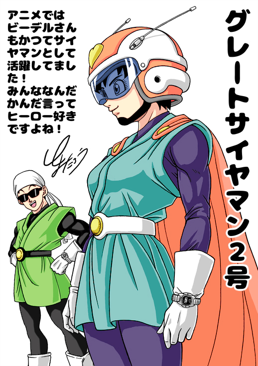 Toyotaro nos ha contado muchas historias de superhéroes últimamente y este mes nos trae a una más. Se trata de Videl, que siguiendo el ejemplo de su novio, se convirtió en la Gran Saiyaman 2. Detrás de ella está Gohan como el Gran Saiyaman, a quien ya vimos antes en esta colección, pero con el casco.