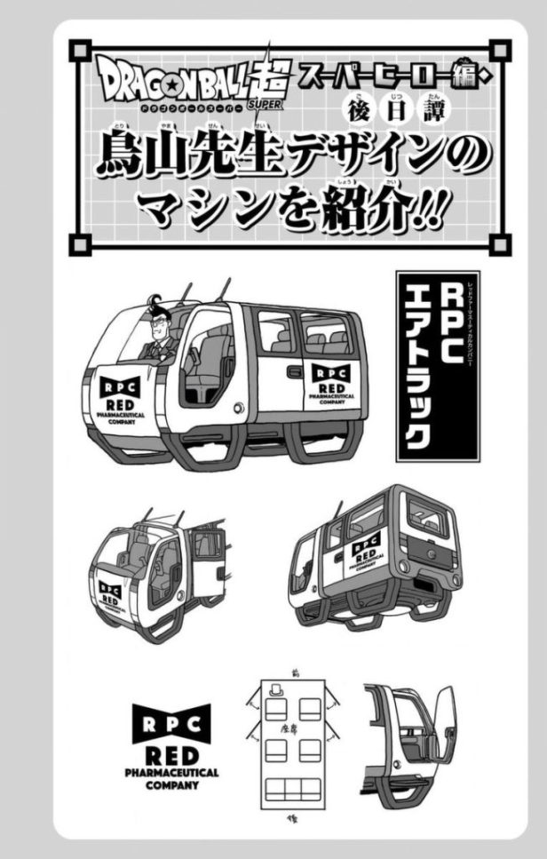 El señor Toriyama diseñó también la furgoneta hover que vimos utilizar a Carmine y el soldado 15 en el epílogo del arco Super Hero. Es muy chula, como todos los mechas del maestro.