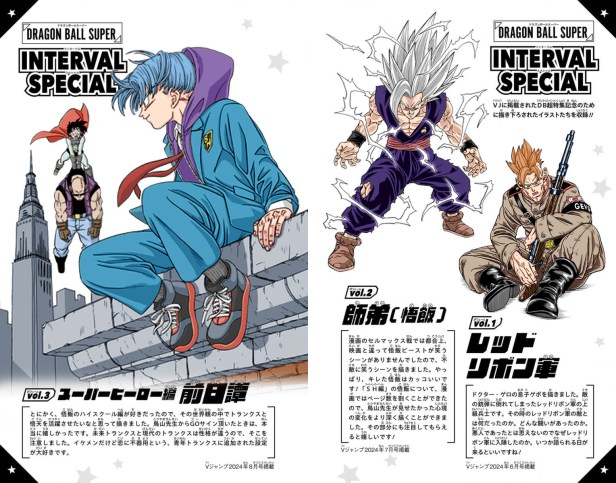 En lo que se llamó el intervalo que aún continua Toyotaro realizó tres ilustraciones que se publicaron en V-Jump. Gohan bestia, Gevo y Goten y Trunks.