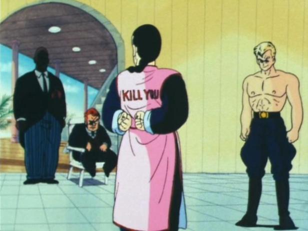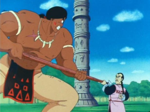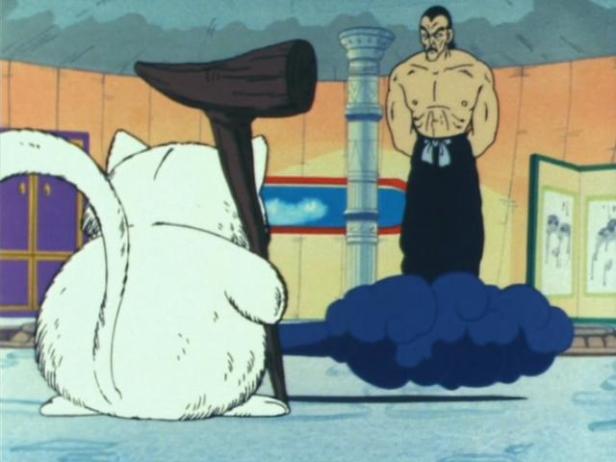 Después se dirigió a la torre de Karin para buscar las bolas que allí había. Mató también al jefe Bora e hirió de gravedad a Goku con su mortífero ataque Dodonpa. Cuando volvió días despues a por la bola que se había dejado, Goku ya estaba preparado para la revancha y el mercenario terminó inmolado por su propia granada.
