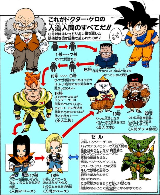 Aunque no lo vimos en su momento, fue él quien creó al androide número 8 que la Red Ribbon intentó usar contra Goku. En una de las páginas del manga supimos que los androides del 1 al 7 presentaron problemas. Del 9 en adelante los creó con intención de matar a Goku. Del 9 al 15 también presentaron problemas, aunque los números 13, 14 y 15 estuvieron cerca de ser exitosos.